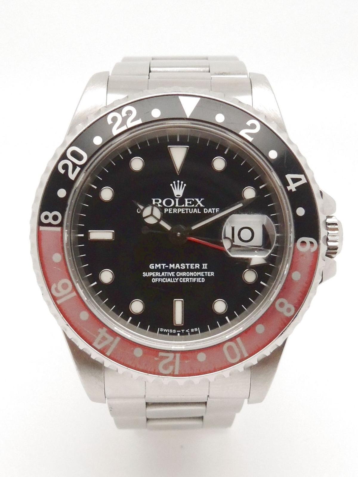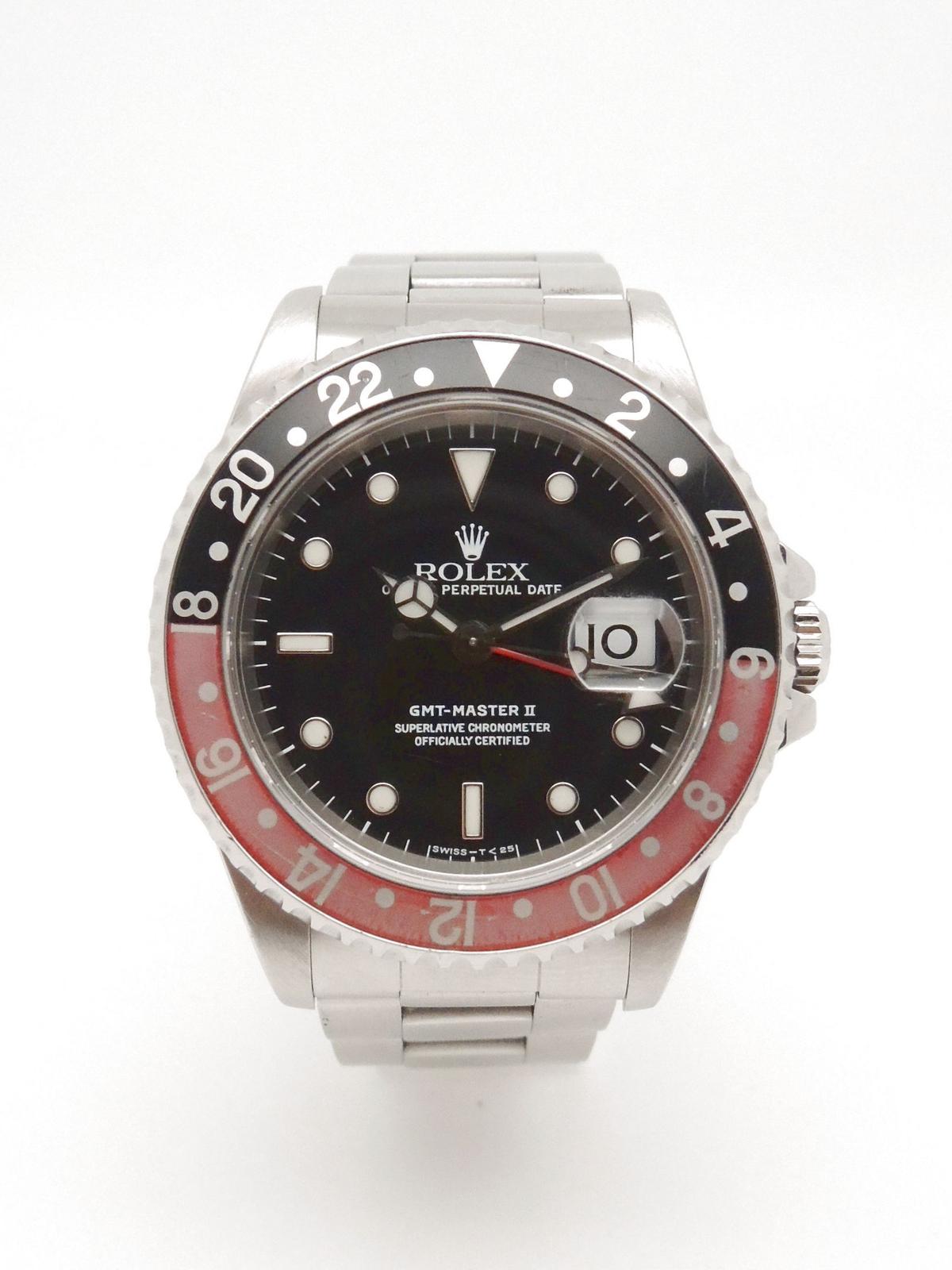 GMT-Master II 16710 Coke - Full steel, Oyster bracelet, black dial, luminescent hands and markers, red & black "Coke" bezel with 24h display, GMT, date, sapphire glass, screw-down crown, chronometer certified automatic movement (COSC)